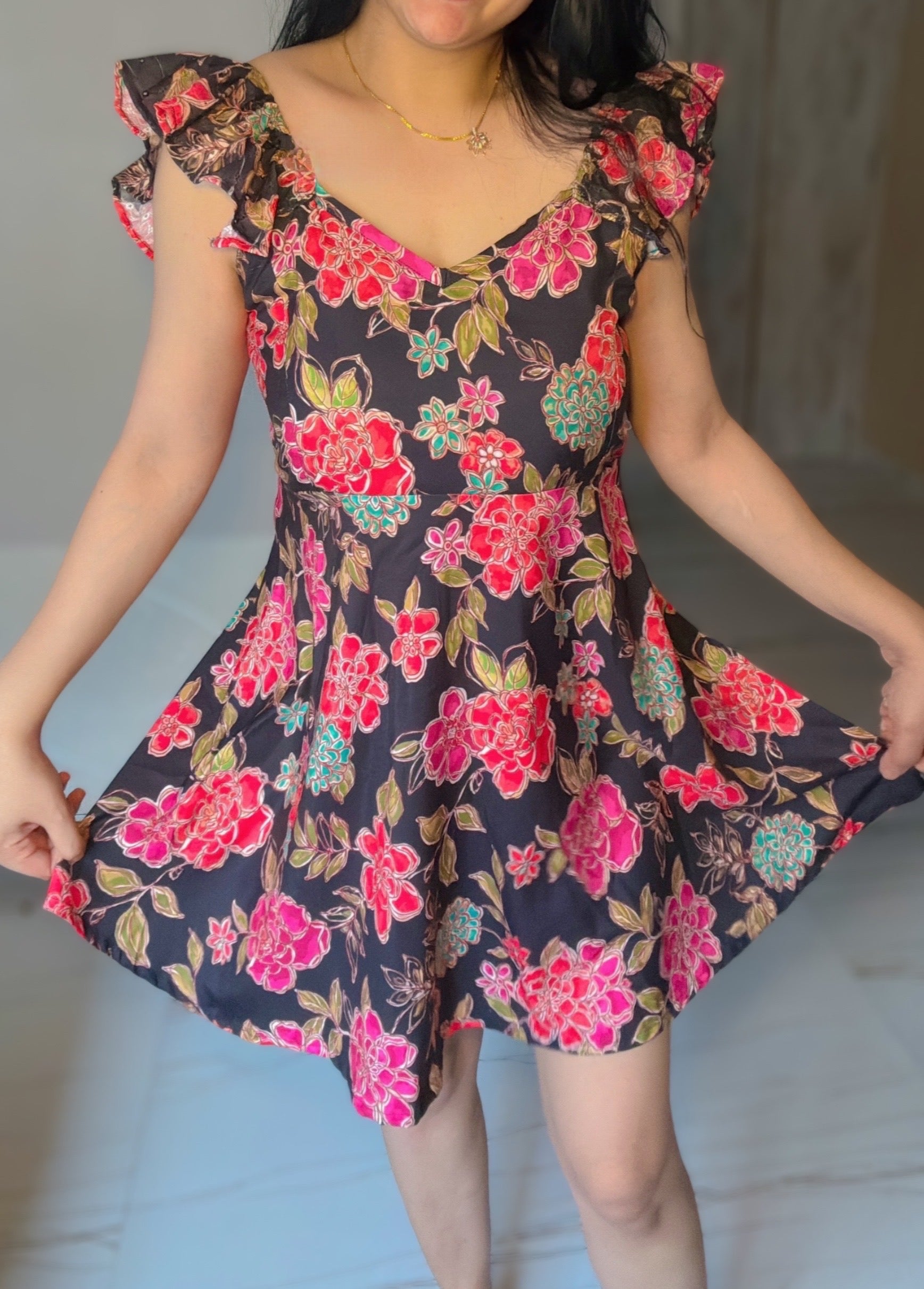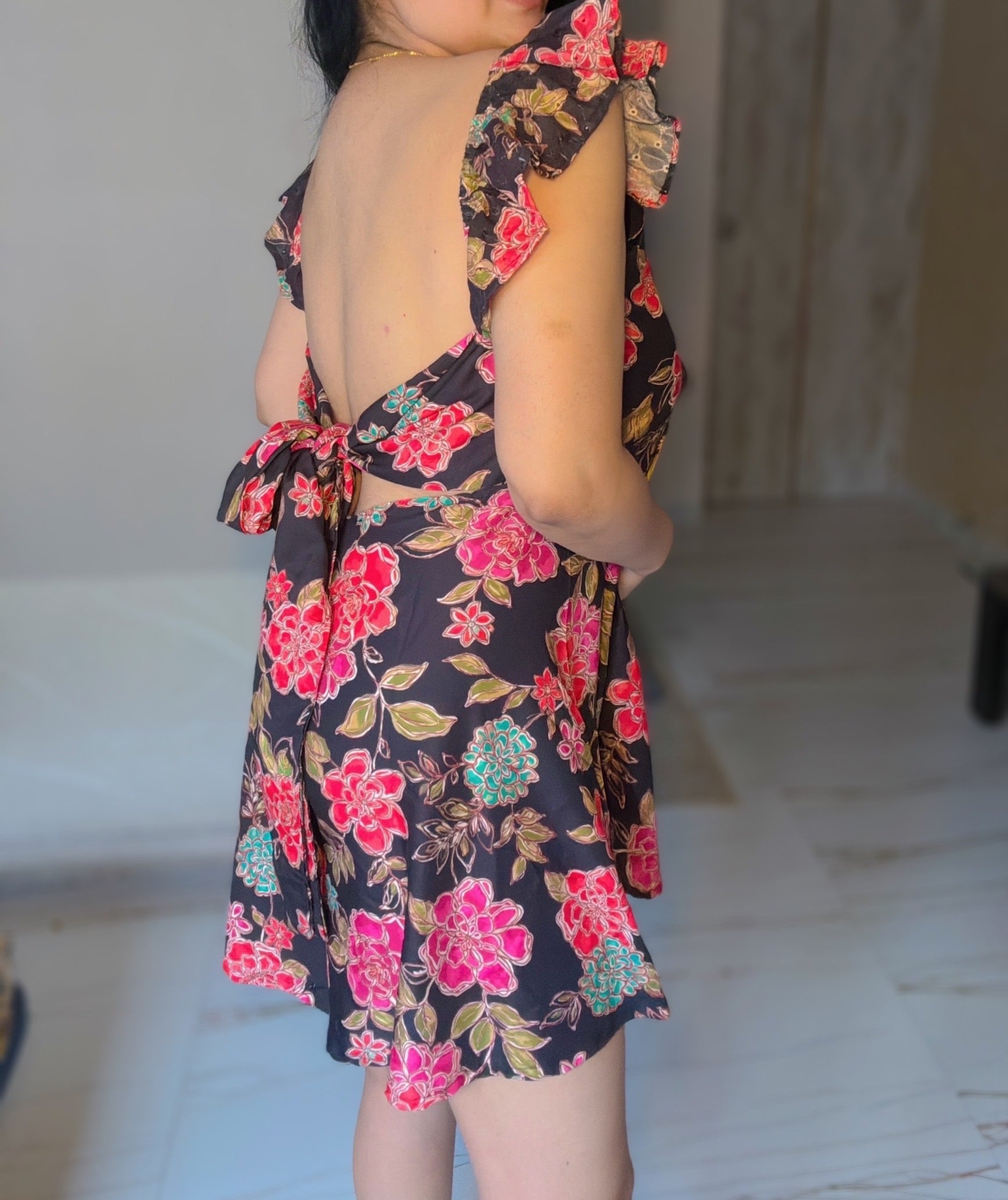 · Sweetheart Neckline with flares having tie-up string at the back.