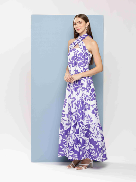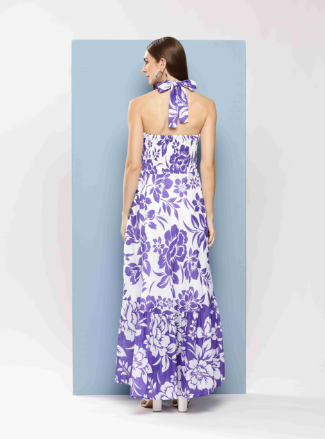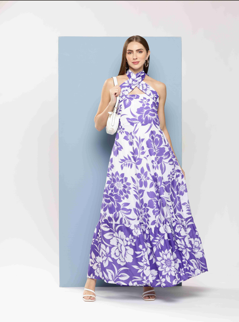 · Square neckline with flares having halter straps, designed in dual colour combination.